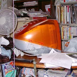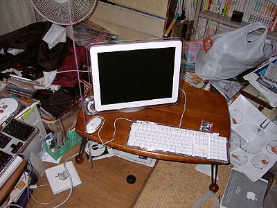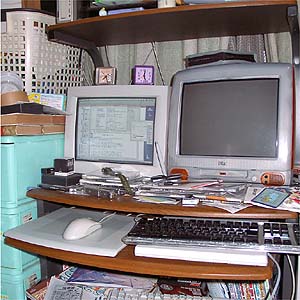 以外と移行に時間がかかって、2日ほどかかりました。データよりもアプリなどの環境を整えるのが面倒でしたね…。いろいろとアプリの問題もあって、当面はMac OS Xは使わずにOS 9をメインに使うことにしてます。キーボードやマウスも前のマシンのものを引き続き使用することにしました。 しかし…以前のマシンから比べると騒音が格段に減って、逆に「ちゃんと動いてるの?」と不安になるほどです(※HDDのアクセスランプはMacには付いていない)。液晶ディスプレイということで不安だったドット欠けも無く、満足です。 |