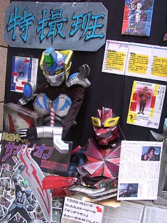 何とオリジナル短編特撮をつくってしまった特撮班。「英雄学科サンダイオン」は上映時間こそ短いものの、演出が秀逸。私もカードリーダーに学生証通して変身したくなりました(笑)。 上映しているモニタの左右には監督との仮想対談記事があったのですが、この文章が非常にヤバめでステキ。Win●yやM×のやりすぎで○報科学部が潰れただとかヤ△オクに横流しして大儲けしただとか…(もちろんフィクションです!)。 |