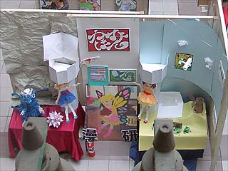 漫研の伝統(?)等身大より大きくなってしまったPOPが目を引いていた雑誌班。 先ほどのドラマティック班同様しっかりとまとまっていますが、こちらは観る者を圧倒させるような勢いが感じられます。 「雑誌王を読む前/読んだ後」の比較広告が素敵にチープで笑えます。 |