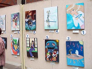 個人制作のパネルの展示エリア。今年は萌え絵からドット絵、果ては詰め碁やダーツまであるという物凄い多彩な作品群となりました…ってかKEGー!S原ー!画力もったいねぇー!(そこがいいのだが) |