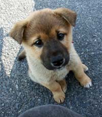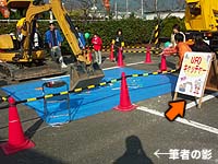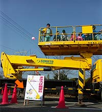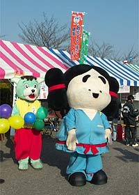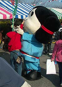 ……只今からこの物体は「メカやまとくん」と呼称することにいたします。 |  ホントのやまとくんはこっち! |  子供の攻撃を必死で防ぐメカやまとくん。 | ☆ お ま け ☆ | ダイハツの車の展示(右)と、 そこにいた子犬の写真(下・右下)。 可愛いですな…