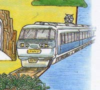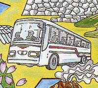 お ま け 。 …表紙が変わって無いとか書きましたけど、実は時代に合わせて少しづつ変わってます。例えば右上の新幹線が700系と500系の間の子みたいな形になってるし、右下の旅客機がJALの新しいカラーになってたりします。 けれどこれは…。 |  なんか物凄く古そうなバス… 昔どっかでこのカラーリング見た気も。 |  京成スカイライナーAE形!? しかもこのカラーは何? |