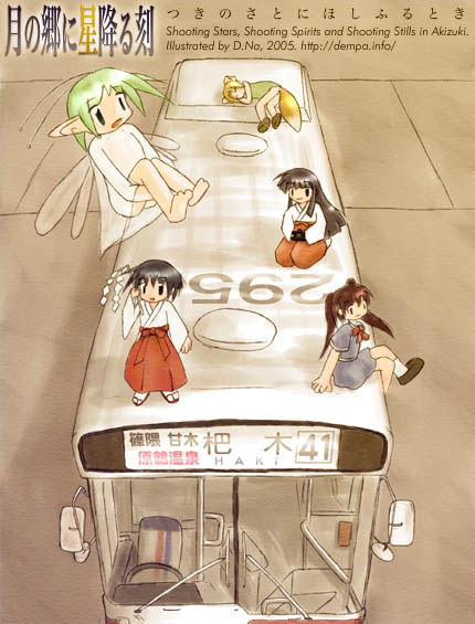 ●健全なえろ絵じゃ無いですけど、最近描いた絵でも…。 |  | ええと、DMH17さんが来福された時に合わせて描いた絵でございます…とはいっても背景は数年前に描いたもので、キャラが思い付かず放置されてたものを復活させたものだったりします。キャラは4月1日ネタで使ったのを。てかこのキャラ達で何か作品描いてもいいかな、なんて最近思ってます。 バスの行先は作品の想定した舞台である秋月にしたかったのですけど、秋月行きは西鉄バスじゃないので、秋月近くの甘木を走るバスで。 時間が無かったんで今いちな感じです、むー。