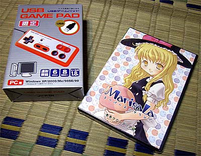 いや、アキバBlogさんの記事を見てたらつい…。 このゲームパッドいろんな意味でヤバいです。外見どころか中身まで花札屋のアレそっくりらしいです…。表面を金色にしたくなります。 | さて、黄昏フロンティアさんのスーパーマリサランドを大起動。キーコンフィグはジャンプがA、ダッシュがBに決まってます。 大プレイ開始なのですよ〜。