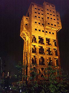 これは詳細を調べねばとウェブ上を調べ廻ってみたのですけど要領を得ず、もしや西日本新聞さんに載った記事なのか?というわけで記事見出し検索を遣ってみれば…ビンゴ!12月1日朝刊、ふくおか都市圏面。 どうもウェブ上には記事が無いようなので紙面より引用してみます。OCRソフトなんて久しぶりに使ったですよ…。 | 炭鉱のシンボルライトアップへ 志免町の立坑櫓 志免町の旧国鉄志免炭鉱跡に残る立坑櫓(高さ53.6m)が、クリスマスに合わせて、12月23日から25日までの3日間ライトアップされることが決まり、11月30日準備が始まった。初めての企画とあって、町民は幻想的な演出に期待を寄せている。 ライトアップを実施するのは立坑櫓の保存活用を求めている町民有志の「志免立坑櫓ライトアップ実行委員会」(古庄信一郎代表)と「志免立坑櫓を活かす住民の会」(黒木駿吉会長)。保存活用に弾みをつけるのが狙い。 町は29日にライトアップ実施を許可。30日は工事関係者が現地を訪れ、ライト設置などの準備を始めた。電球は櫓の周囲4カ所に400wを4個ずつ設置。計6400wの明かりで櫓を照らす。ライトアップは日没から午前0時まで。最終日は近くの町総合福祉施設シーメイトで太鼓演奏などを行い、雰囲気を盛り上げる。 立坑櫓は1943年から63年まで石炭採掘に使われた石炭産業を象徴する町のシンボル。所有する新エネルギー・産業技術総合開発機構(NEDO)は安全面から存続に難色を示しているが、南里辰己町長は、現状のまま保存する方針を先の町議会全員協議会で明らかにした。 | 2005年12月1日付 西日本新聞朝刊都市圏版22面都市圏面より ※なお文章中の漢数字、単位文字類は修正した。 |