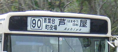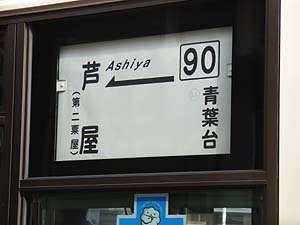 ちなみにこれが私の乗ったバスの行先表示。 芦屋方面に行くバスは必ず「芦屋」の表示がある模様。 逆に芦屋の文字が無ければそのバスは芦屋に行きっこないというワケで、分かりやすい。 |