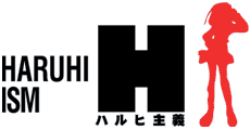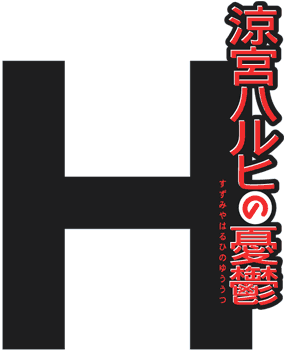 さて、ネタに使うには最適の"HARUHI ISM"のマークですが、まず「H」はフォントでは無くて、同じ大きさの長方形を3つ組み合わせたモノのよう。「HARUHI ISM」はHelvetica Condensed Boldをさらに長体にしたもの、「ハルヒ主義」は…どうやら上のタイトルロゴと同じファミリーみたいなんですが…やはり分からず。そんなわけでこの画像も微妙に違うモノ。 このマーク、いろんなパターンがあってそれぞれ微妙に位置関係が異なっています。ネタに使う時は元ネタの画像をよく研究してみるといいかもしれません。