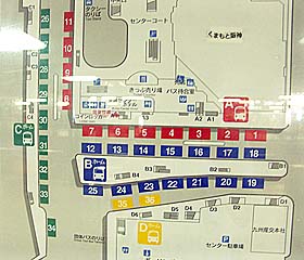 物凄いバスセンターと言えば、熊本交通センターなんかも凄いですよ。なんたって発着ホームが欠番無しで1番から36番まで、それが多層階ではなくワンフロアで並んでるから壮観です。参考として右に構内案内図でも〜。