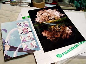 | ■6月9日(金) | ●先日のお買い物? お買い物というか、ちょっくら注文してたものが出来上がったので取りに行きました。 右の写真がそれ。要するに… | 写真の焼き増しなわけですな。結構でかくしてみました。比較用に手許にあった同人誌を並べてみました。…非オタにわからんだろソレ(ちなみに同人誌は某くびわのえらいひとの。こんなトコで使ってゴメンナサイ…)。 ってかここまで大きくしたらちょっとは荒れが目立ってくるかと思ったら細部までくっきり、まだまだ伸ばしても平気そう。改めてフィルムの凄さを感じた次第です。