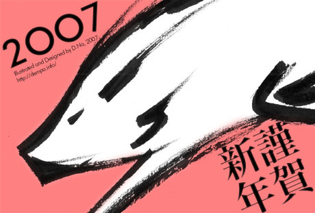 …私には「クリスマス絵と年賀絵どちらかを描くと、もう一方が描けない」というジンクスがありまして。去年暮れにクリスマス絵を描いた今回は、ご覧のように手抜きであります。 筆で適当に猪を描きまして、あとは画像処理でフィニッシュ。正味30分もかかって無い気がします…。