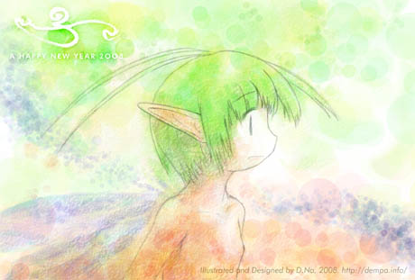 | ■1月9日(水) | ●あけましておめでとうございます〜(遅い)。 例によって三が日はしっかりお休みの当サイトでありました。 年始と言うことで今更ながらへれへれ描いた絵でも。 |  | 今回は、塗り方をがらりと変えてみました。はみだしたっていいじゃない!色にムラがあってもいいじゃない!…と書けばそれっぽいですが、時間が無かっただけですハイ。 描いてる本人はとっても楽しかったのですが、出来上がったのはどっかで見たような色合いの絵。あまりオリジナリティを出すことが出来ませんでした。