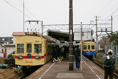![]() 駅のホーム上から。この駅では貝塚行きと津屋崎行きが離合するけれども、貝塚行きに乗り込む学生が圧倒的に多い。 そういやまた305号だ。新宮でうろうろしてるうちに津屋崎から戻ってきたんだね。 右の津屋崎行きの電車は廃止記念塗装。この電車にのって次の目的地へ。 |