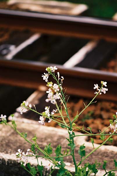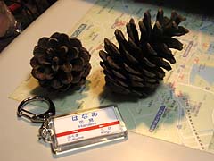 線路沿いに咲いてた花を絡めて撮影。この写真で輝いていた線路も、あっという間に錆び付いてしまうのか…それとも錆び付く暇も無く剥がされてしまうのか…。![]() 名残惜しいけど、そろそろ帰ろう。 お土産に、松ぼっくりと、キーホルダーを持って。 |