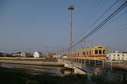 | 海沿いに走る宮地岳線は、幾つかの川の河口近くを渡っている。そこにはもちろん、橋がある。 そんな橋の姿を捕らえよう。…前から見たかった光景が、あるんだ。 | |