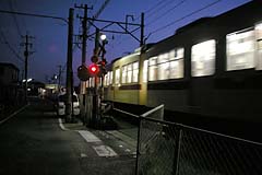 | 家路に向かう人を乗せ、鉄路を眩く光らせて電車がやってくる。何十年と繰り返されたであろうこの光景もあと数日で消えてしまう。 駅員のおばさんの、降りるお客さん一人一人にかける「ありがとうございます」の声が、優しく響いていた。 |