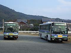 この路線には何度か乗っているのだが、気になる建物がある。中間バス停前にあるナゾの銀色の楕円形の建物。UFOじゃねぇかと思わせる位の周りから浮いた雰囲気である。この建物、どうやら医院のようなのだが…。 宮の浦で多めの下車。ここから道は海岸を離れ、山越えの道となる。峠を越えて下ってゆくと終点西の浦。2分遅れの16時1分着。ここまで乗り通した人も結構居た。 | |||