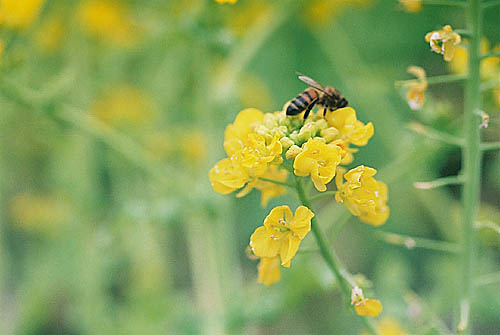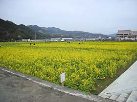 上原鶴バス停で下車。 降りてすぐに見えてくるのは菜の花畑。実はこの場所、去年の秋口に行ったことがある場所なのです。その時はひまわりが咲いていました。
