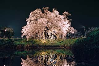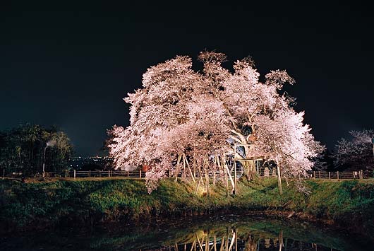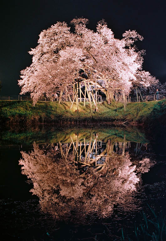 | 溜め池の畔の、本当に大きな桜。光に照らされ、己を水面に映した姿は「幽玄」と言うべきか…。 この姿を見ていると、美しい、という感情と同時に「恐ろしい」という感情も沸き上がって来ます。桜が人を狂わせるというのは本当かも知れない。 ちなみに上の写真のお気に入りの部分は桜の左にちらりと久留米の夜景が入ってる事。夢と現を同時に見てる感じ。しかし、夜景って枚数の割に構図が限定されてアレですね…同じような写真が続いちゃう。 一番のお気に入りは、コーナーの最初に挙げた写真。水面の鏡像が微妙に歪んでいるのが好きなのです。 そうそう、来られた方にいろいろと解説をしてるおじさんがいらっしゃいまして、話を聴くとその方が御自分でこの周辺の環境を整備されたとの事!池の周りの道を作ったり、助言を得ながら照明の設置場所を検討されたりしたそうで…本当にご苦労様です。それでですね、私との話の中で「どちらから来られたんですか」という話題になりまして、福岡の方から来たんですよ、いや車じゃ無くて電車とバスで来たんです、と答えましたら…。 おじさんの知り合いの方が車で久留米駅まで送って下さったんですよ! 本当にありがとうございます!実は以前にもこういった経験はあるのですが、その時も筑後地方でした。ちっごの人はみんな情に厚い人ですよホント。 これで今年の桜紀行は終わり。春を集めて咲き誇った桜たちは、あっと言う間に葉桜に。桜前線は北へと向かって行くのでした。 |