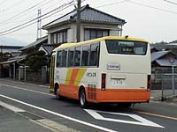 そんなこんなでバスがやってきました。クリームにオレンジの豊前市営のコミュニティバスです。しばらくバスに揺られて、横武公民館前バス停で下車。…実は次の才尾バス停とどっちが近いのか分からないので手前で降りました。結論としては才尾バス停が近かったのですが…。 |