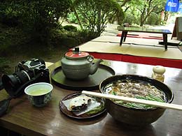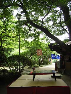 ………VIPPER自重しる。そういや以前もこのテの絵馬を見かけたことが…。 さて、お参りしたら次は腹ごしらえだ!…というワケで天満宮の裏手の一番奥のお石茶屋へ。個人的には梅ヶ枝餅はここが一番美味しいと思うのです。味だけじゃ無く、雰囲気も最高。 | ||