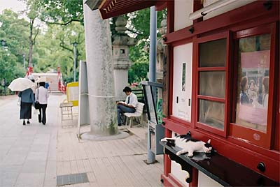 ○ お ま け ○ ![]() 天満宮の参道にある建物の軒下で寝てらっしゃるネコさん。 後日太宰府を訪れた時もここで寝てたので、どうやらお気に入りの場所のよう。 |