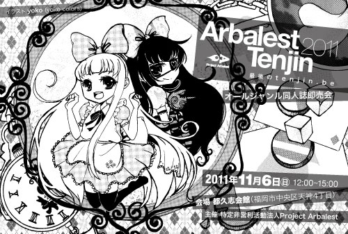2011年11月に福岡市にて開催されました「Arbalest Tenjin 2011 / 最後のtenjin.be」のポストカードなどのデザインを行いました。