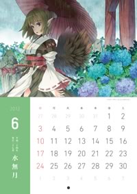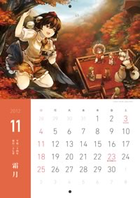 2011年11月の「第百二十六季 文々。新聞友の会」の開催記念として頒布されたカレンダーのデザインを行いました。東方Projectの射命丸文ちゃん好きにはたまらないものとなっております。