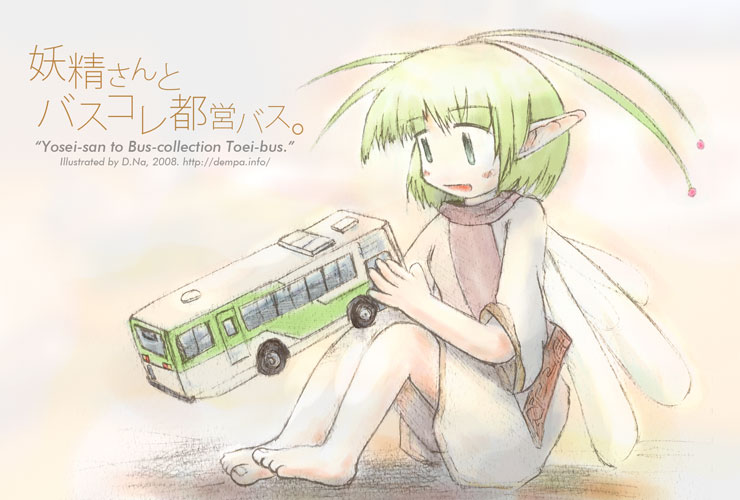 | ■ここでは。 当サイトの管理人であるD.Naが描いた絵をへれへれと展示しております。 ●2012年妖精さん年賀絵 (2012年1月)いつもの妖精さんこと「リュイ」を描いた年賀絵です。辰年なので、まんが日本昔ばなしのオープニング映像でも想像しながら描いてみました。時間がなくてちょっと雑な感じになったり、キャラデザイン間違えたり(長耳とか羽とか描き忘れた、オリキャラなのに)してました…。 ●西鉄2000形擬人化娘 (2010年10月)西鉄2000形が引退するということで描いたものです。西鉄電車の車輌のなかで一番好きな形式が2000形でした。憧れだった花形特急時代、3扉化後に乗り慣れることになった急行時代、どちらも好きでした。運転席が中央にあるという稀有な特徴をもち、最後まで6輌貫通編成・クロスシートを貫いた誇り高き車輌だと思います。 ちなみにキャラクターとしては2003年に描いたもののリファインになります。 ●スク水きつね耳残暑見舞い (2010年8月)久々にオリジナルキャラのきつね耳の娘を描いてみました。名前は「狐音」。「コン子」とか呼ぶと嫌がります。スク水は例によってこだわって描きました。…こだわっても、それを描けるだけの技術が不足気味なのですがねぇ。 スク水の構造がよくわかる白スクバージョンを用意してみました。 ●たんぽぽと妖精さん (2010年7月)私の絵によく出てくる「いつもの妖精さん」に名前を付けたので、そのお披露目のために描いた絵。その名前は「リュイ・アクィツェレーネ」。気軽に「リュイ」と呼んであげて下さいませ。 ●西鉄紫開業記念ゆかりん (2010年3月)2010年3月に西鉄天神大牟田線に開業した新駅「紫駅」。それに合わせて東方Projectより八雲紫を描いてみたもの。実際に紫駅が出来た場所から北側を見た風景を描いています。…描く為に取材したのは開業半年前だったのに、制作がちっとも進まなかった絵。 ●妖精さんとバスコレ都営バス (2008年10月)何故か描いた記憶が曖昧な一枚。北天さんに差し上げるつもりで都営バスのバスコレをいつもの妖精さんに持たせたのは判るのですが、いつ描いたっけ…という不思議な絵なのです。 ちなみにこの妖精さんは自身の大きさを変えられるという、描き手に優しい設定ナノデスヨ。 ●西鉄8000形擬人化フィギュア (2008年4月)2008年のエイプリルフールネタ。擬人化フィギュア発売予告風にしてみました。 スパッツとふとももがポイント。胸を大きく描くのは苦手で、これが限界です…。 ●2008年妖精さん年賀状 (2008年1月)私の絵によく出てくる「いつもの妖精さん」を描いた年賀状。 こう、色が溢れるイメージで描きました。 ●西鉄バス娘さんと昭和バス娘さん (2007年4月)これもエイプリルフールネタとして「バス擬人化同人誌即売会」のチラシイラストっぽく仕上げたものです。 …昭和バスと西鉄バスが出会う場所は少しずつ少なくなって佐賀市くらいになってしまい、西鉄バスの一般色は100周年を期にリニューアルされ、この絵もアッという間に古い印象になってしまいそうです。 |